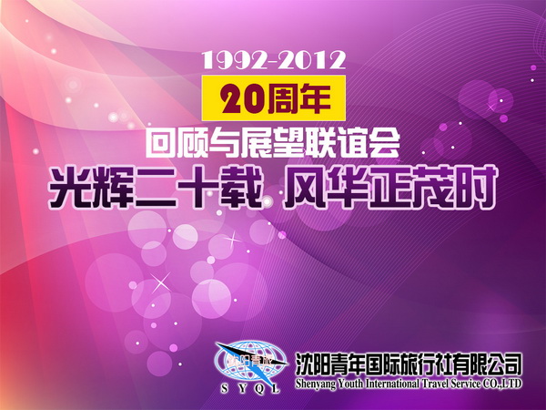 2013年3月12日,“光辉二十载·风华正茂时”沈阳青年国际旅行社成立二十周年回顾与展望联谊会在沈阳北约克维景国际大酒店7楼宴会厅隆重举行。 社会各界领导、旅游行业同仁到会庆祝。