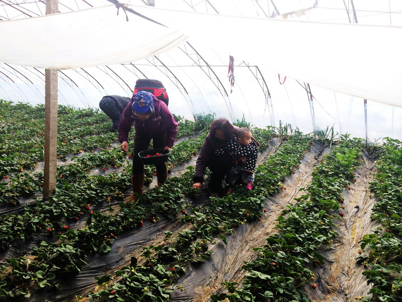 3月8日活动当天报名火爆,抢到名额的游客们怀着激动无比的心情踏上旅途。 在温室草莓大棚,大家尽情享受亲近自然、自己动手采摘的乐趣。 一家老小齐出动,每个人都收获颇丰。